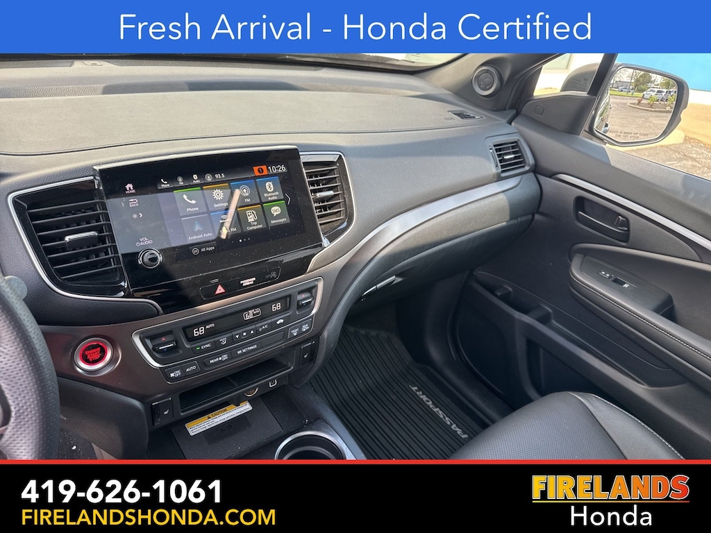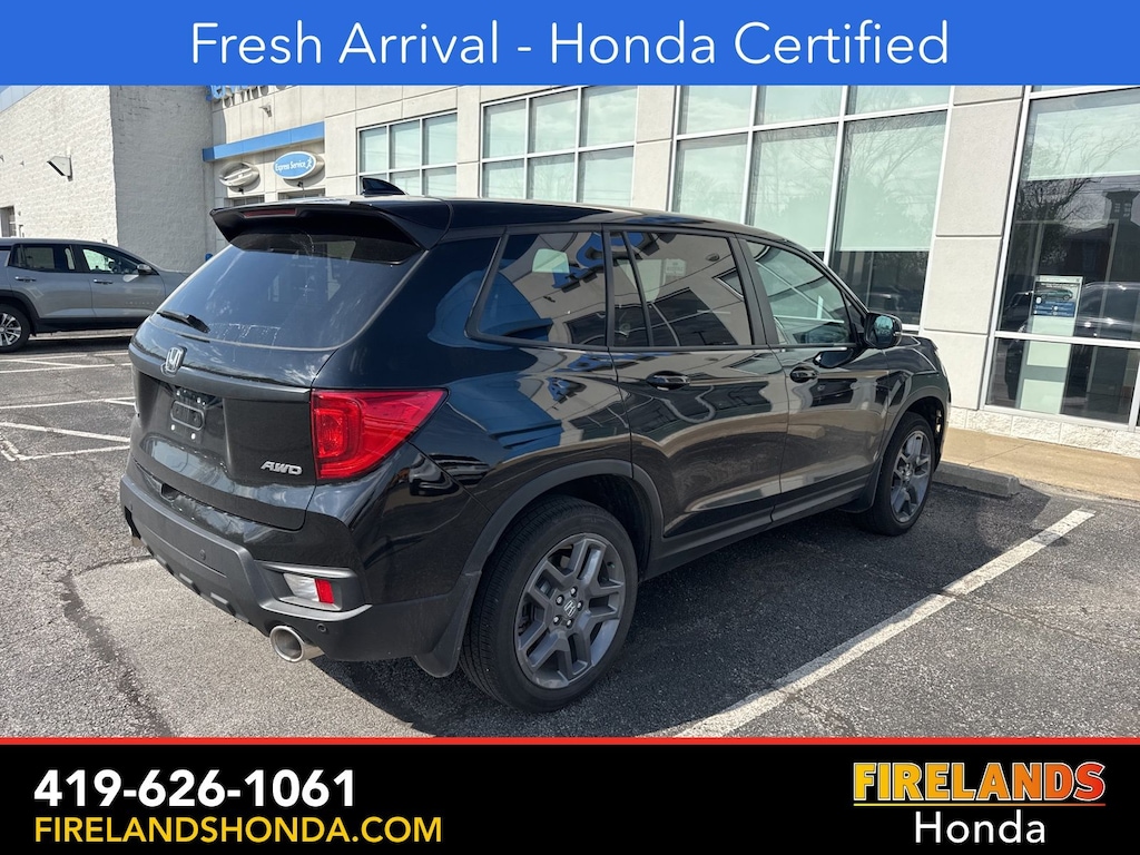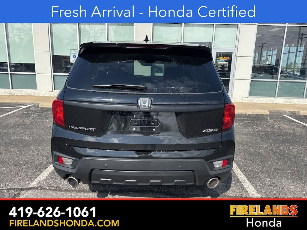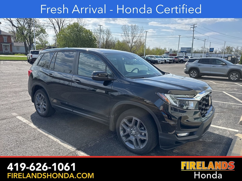 Firelands Honda is proud to offer this good-looking 2023 Honda Passport in Crystal Black Pearl. This Passport has been checked by our award winning service department. Hot features include: Bluetooth Hands Free, Back Up Camera, Remote Start, Local Trade, Adaptive Cruise Control, Balance of Factory Warranty, Service Records Available, All-Wheel Drive, Heated Leather Seats, Locally Owned New Car Trade, Lane Departure Warning, Apple Carplay/Android Auto, Blind Spot Detection, Fog Lights, Automatic Emergency Braking, Forward Collision Warning, Rear Cross Traffic Alert, Honda Certified, Moonroof / Sunroof, Clean CARFAX, One Owner, No Accidents, Power Liftgate, Memory Seats. Certified.