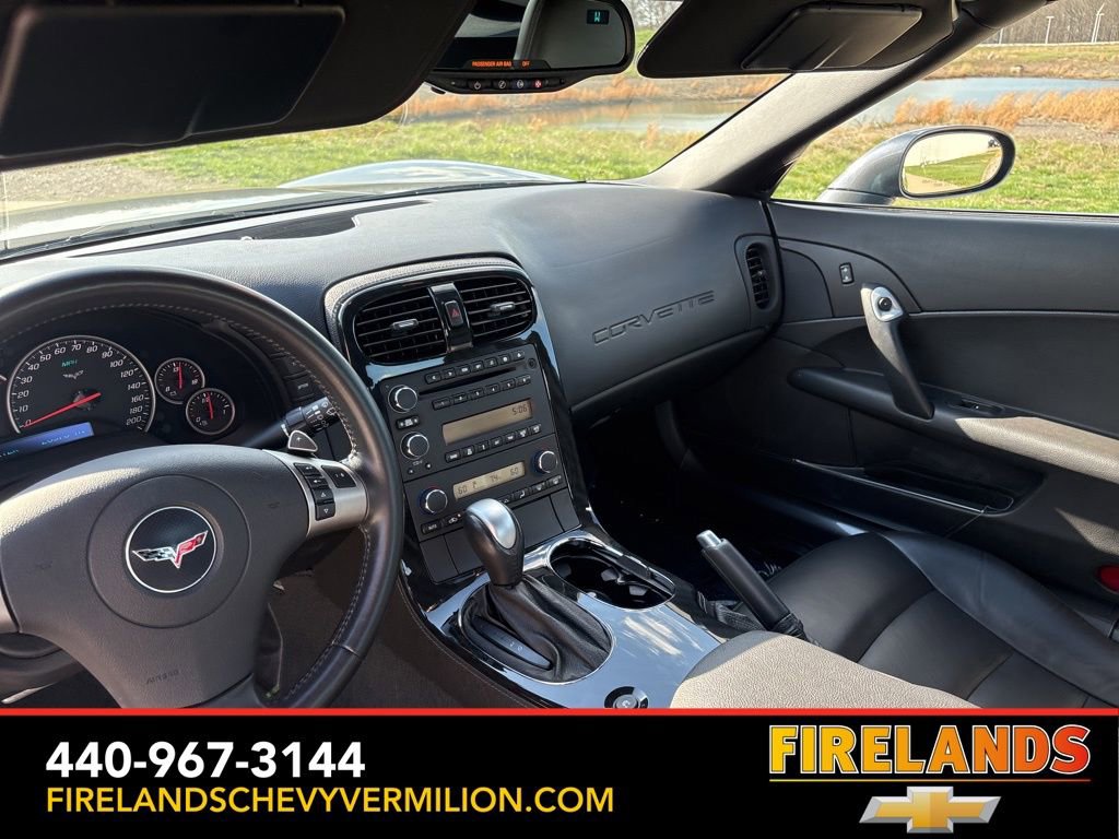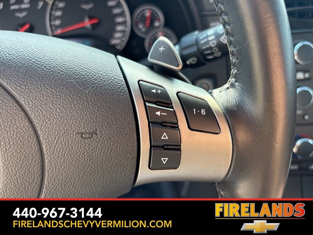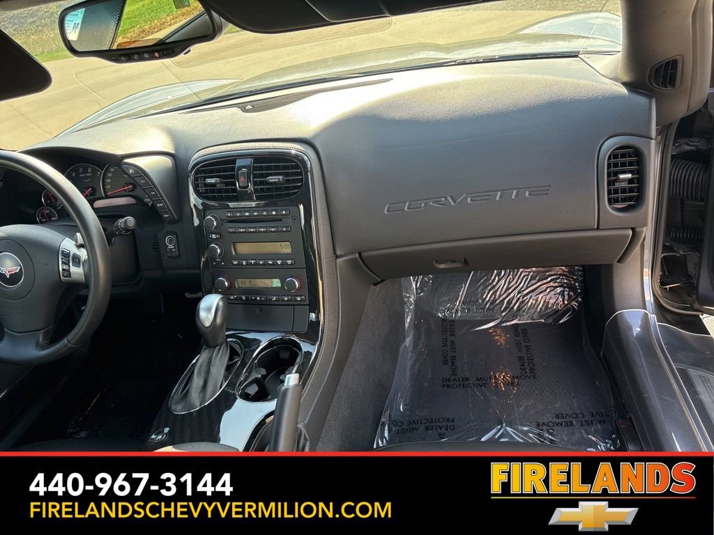 The attention to detail is evident in the Corvette's premium features, such as the 6-speed automatic transmission with paddle shifters, 18-inch chrome aluminum wheels, and the high-quality audio system with a 6-disc CD changer and MP3 playback. The leather-wrapped steering wheel and shift knob add a touch of elegance, while the power driver's seat and automatic climate control ensure your comfort on every journey.