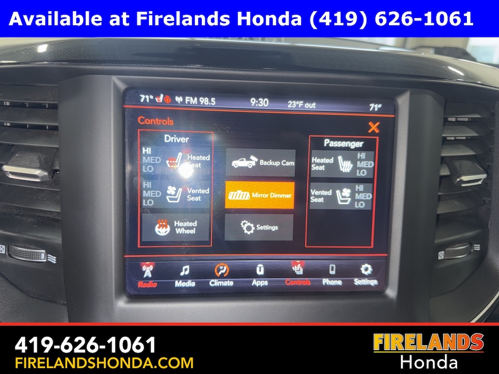 Firelands Honda is proud to offer this gorgeous 2020 Ram 1500 in Maximum Steel Metallic Clearcoat. This 1500 has been checked by our award winning service department. Hot features include: Bluetooth Hands Free, Back Up Camera, Navigation / GPS, Remote Start, Local Trade, Ventilated/Cooled Seats, Service Records Available, 4x4, Heated Leather Seats, Lane Departure Warning, Apple Carplay/Android Auto, Blind Spot Detection, Fog Lights, Forward Collision Warning, Rear Cross Traffic Alert, Trailer/Tow Package, Memory Seats, Heated Steering Wheel, Chrome Running Boards, Tonneau Cover, Sport Package, Sliding Rear Window, Auto High Beam Headlamp Control, Black Interior Accents, Blind Spot & Cross Path Detection, Body Color Door Handles, Body Color Exterior Mirrors, Body Color Front Bumper, Body Color Premium Power Mirrors, Body Color Rear Bumper w/Step Pads, Foam Bottle Insert (Door Trim Panel), Grille Surround 3 Body Color Tex 2 Black, Laramie Level 1 Equipment Group, ParkSense Front/Rear Park Assist w/Stop, Quick Order Package 27H Laramie, Rain Sensitive Windshield Wipers, Rear 60/40 Folding Split Recline Seat, Remote Tailgate Release, Sport Appearance Package, Sport Decal, Sport Performance Hood, Tailgate Ajar Warning Lamp, Wheels: 20" x 9" Premium Painted w/Inserts.
