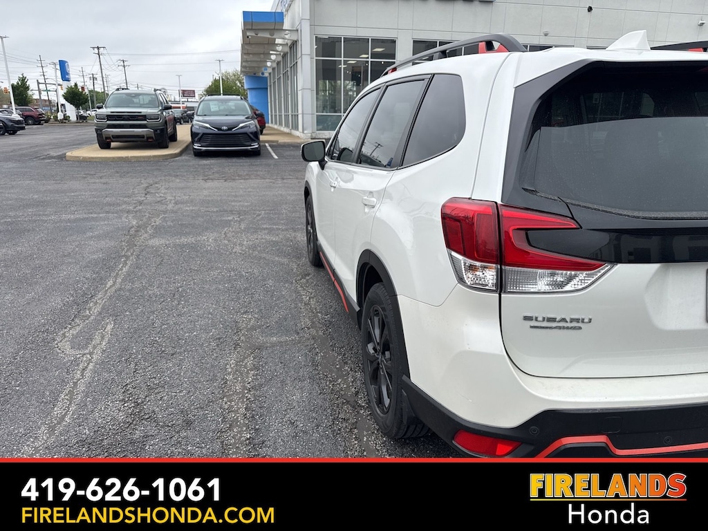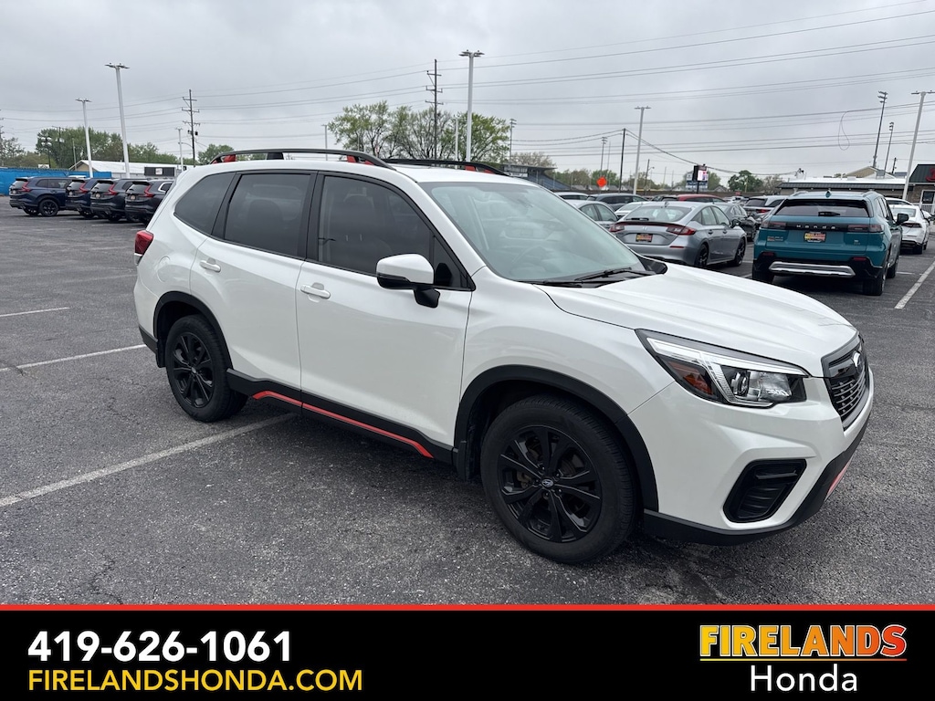 Firelands Honda is proud to offer this beautiful 2019 Subaru Forester in Crystal White Pearl. This Forester has been checked by our award winning service department. Hot features include: Bluetooth Hands Free, Back Up Camera, Adaptive Cruise Control, Service Records Available, All-Wheel Drive, Lane Departure Warning, Apple Carplay/Android Auto, Blind Spot Detection, Fog Lights, Automatic Emergency Braking, Forward Collision Warning, Rear Cross Traffic Alert, Panoramic Moonroof, Power Liftgate, Heated Front Seast, All-Weather Floor Liners, Auto-Dimming Exterior Mirror w/Approach Lighting, Auto-Dimming Mirror w/Compass & HomeLink, Blind Spot Detection w/Rear Cross Traffic Alert, BSD & Rev Auto Brake & harman kardon & Pwr Rr Gate, Cargo Net, harman kardon 576W Amp & Speaker System, Popular Package #2, Power Rear Gate, Radio: Subaru Starlink 8.0" Multimedia Plus System, Rear Bumper Cover, Reverse Automatic Braking System (RAB).