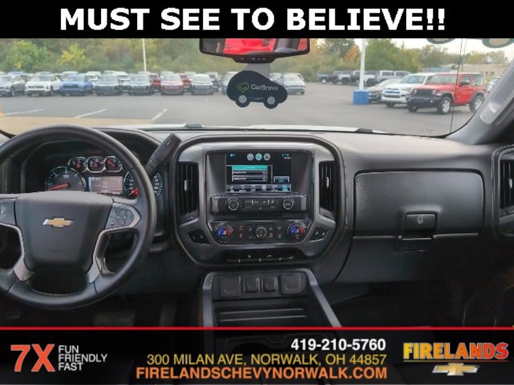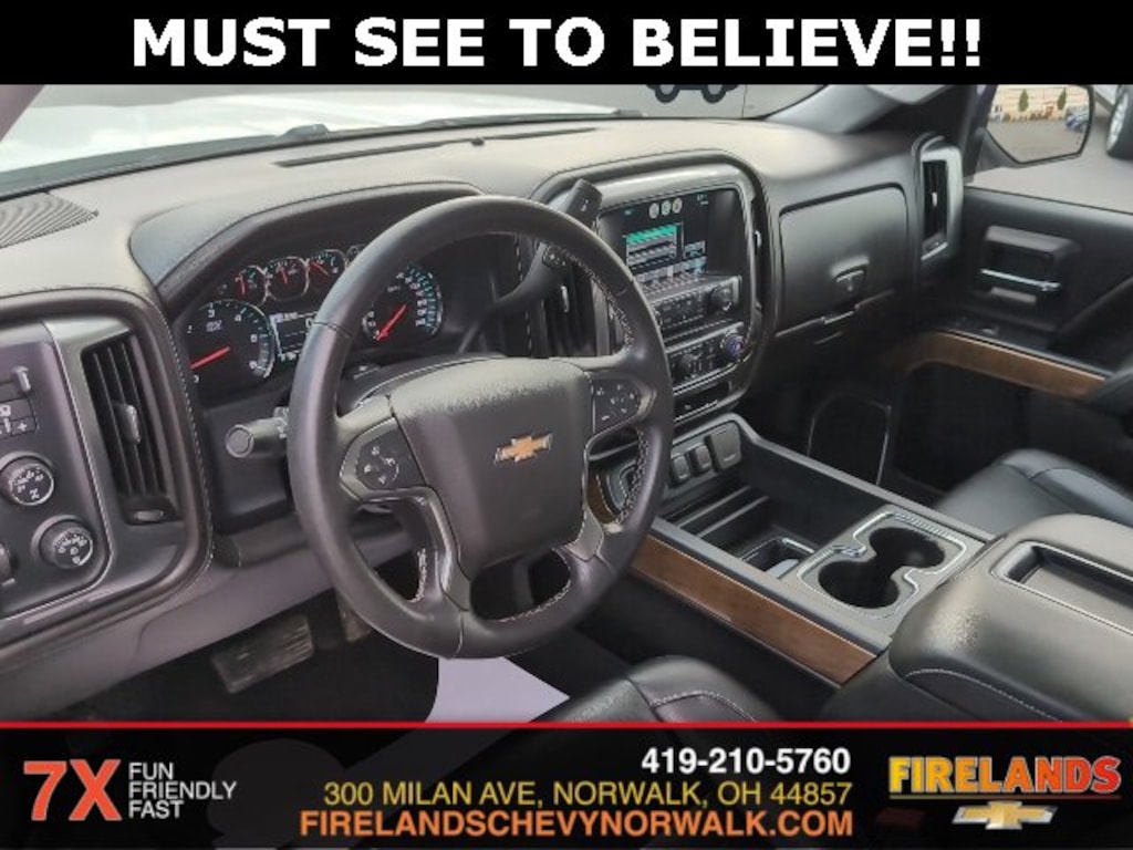 2015 Chevrolet Silverado 1500 LTZCar Bravo Certified, 1-Owner, Great Price, Clean CarFax, Like New, 4WD / 4x4 / AWD, Leather Seats, Heated Seats, Remote Start, Navigation System, Bluetooth, Backup Camera, Steering Wheel Controls, Cruise Control, Multi Zone Climate Control, Keyless Entry, Premium Audio, Satellite Radio, Premium / Alloy Wheels, Tow Package, Trailer Package, Trailer Hitch, 6-Speed Automatic Electronic with Overdrive, 4WD, Black Leather, 110-Volt AC Power Outlet, 150 Amp Alternator, 4.2 Diagonal Color Display Driver Info Center, 6 Speaker Audio System, Auto-Dimming Inside Rear-View Mirror, Auxiliary External Transmission Oil Cooler, Bluetooth® For Phone, Chrome Bodyside Moldings, Chrome Cap Power-Adjustable Heated Outside Mirrors, Chrome Door Handles, Chrome Grille w/Chrome Surround, Chrome Mirror Caps, Color-Keyed Carpeting w/Rubberized Vinyl Floor Mats, Deep-Tinted Glass, Driver & Front Passenger Illuminated Vanity Mirrors, Dual-Zone Automatic Climate Control, Electric Rear-Window Defogger, EZ Lift & Lower Tailgate, Front Chrome Bumper, Front Halogen Fog Lamps, Heavy-Duty Rear Locking Differential, Leather Wrapped Steering Wheel w/Cruise Controls, Manual Tilt/Telescoping Steering Column, OnStar 6 Months Directions & Connections Plan, OnStar w/4G LTE, Power Sliding Rear Window, Power Windows w/Driver Express Up, Preferred Equipment Group 1LZ, Rear 60/40 Folding Bench Seat (Folds Up), Rear Chrome Bumper, Rear Vision Camera w/Dynamic Guide Lines, Rear Wheelhouse Liners, Remote Keyless Entry, Remote Vehicle Starter System, Single Slot CD/MP3 Player, Steering Wheel Audio Controls, Theft Deterrent System (Unauthorized Entry), Trailering Equipment, Universal Home Remote.Clean CARFAX. CARFAX One-Owner.4WD EcoTec3 5.3L V8 Flex Fuel 6-Speed Automatic Electronic with OverdriveOdometer is 2436 miles below market average! Recent Arrival!Whether you are looking for a Great Deal, a Great Price, or a Great Value, Firelands Chevrolet has you covered. Join us for the BEST Experience you will ever have. If we do not have what you are looking for, just let us know and we will find it. We have access to any make/model and also offer Certified Pre-Owned vehicles too. We can also locate vehicles with just about any option to include Sunroof, Moonroof, Navigation System, Heated Steering Wheel, HomeLink, LED Headlights, DVD Player, Rear Seat Entertainment, Backup Camera, Brake Assist, Automatic Emergency Braking, Blind Spot Monitoring, Cross Traffic Alert, Rear Cross Traffic Alert, Lane Departure Warning, Night Vision, Head-up Display, Automatic Parking, Cruise Control, Adaptive Cruise Control, Rain Sensing Wipers, Remote Engine Start, Memory Seat, Leather Seats, Heated Seats, Cooled Seats, Third (3rd) Row Seats, Steering Wheel Controls, Multi-zone Climate Control, Keyless Entry, Allow Wheels, Premium Wheels, Apple CarPlay, Android Auto, WiFi Hotspot, Premium Audio Sound System, Bluetooth® Audio, Hands-Free Audio, Portable Audio Connection, USB Port, Satellite Radio, Trailer Tow, Tow Hitch, 4WD, AWD, FWD, Disability Equipped, Keyless Start, Security System, Roof Rack, Dual Rear Wheels, Stability Control, and much more!